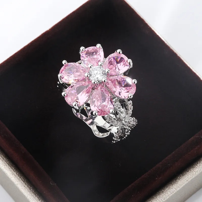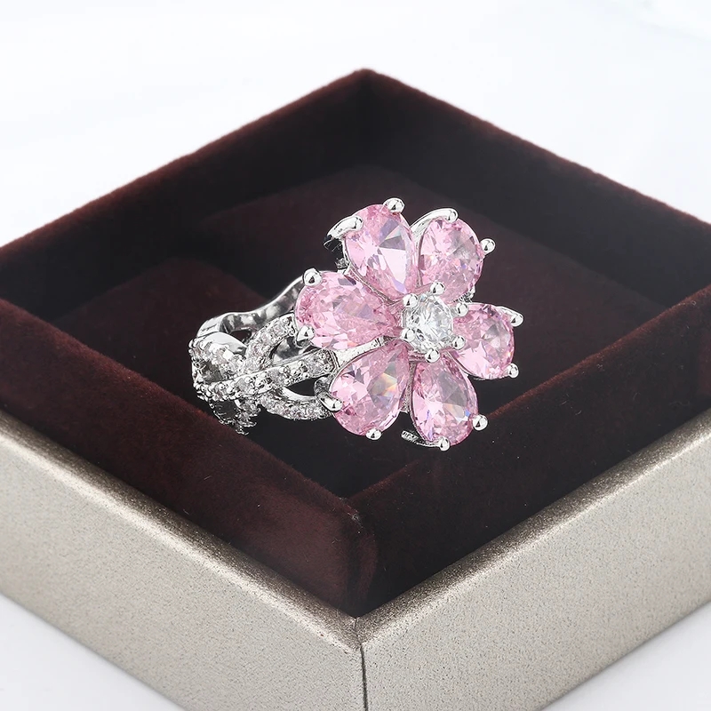 Pink flower zircon ring