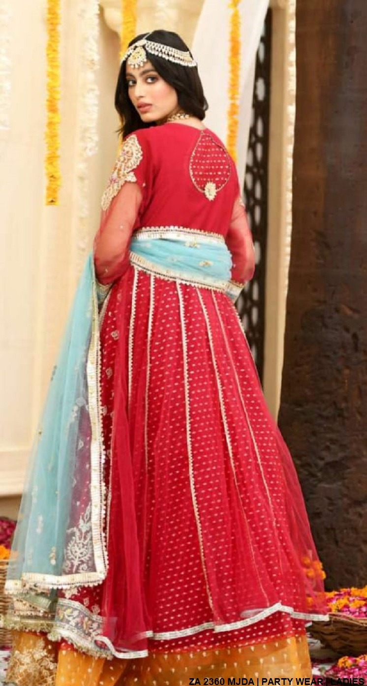 Shirt Fabric : NET Trouser Fabric : GRIP Dupatta Fabric : NET Style : OPEN STYLE FROCK Shirt Length : 59/61 Sizes : S.M.L.XL available
