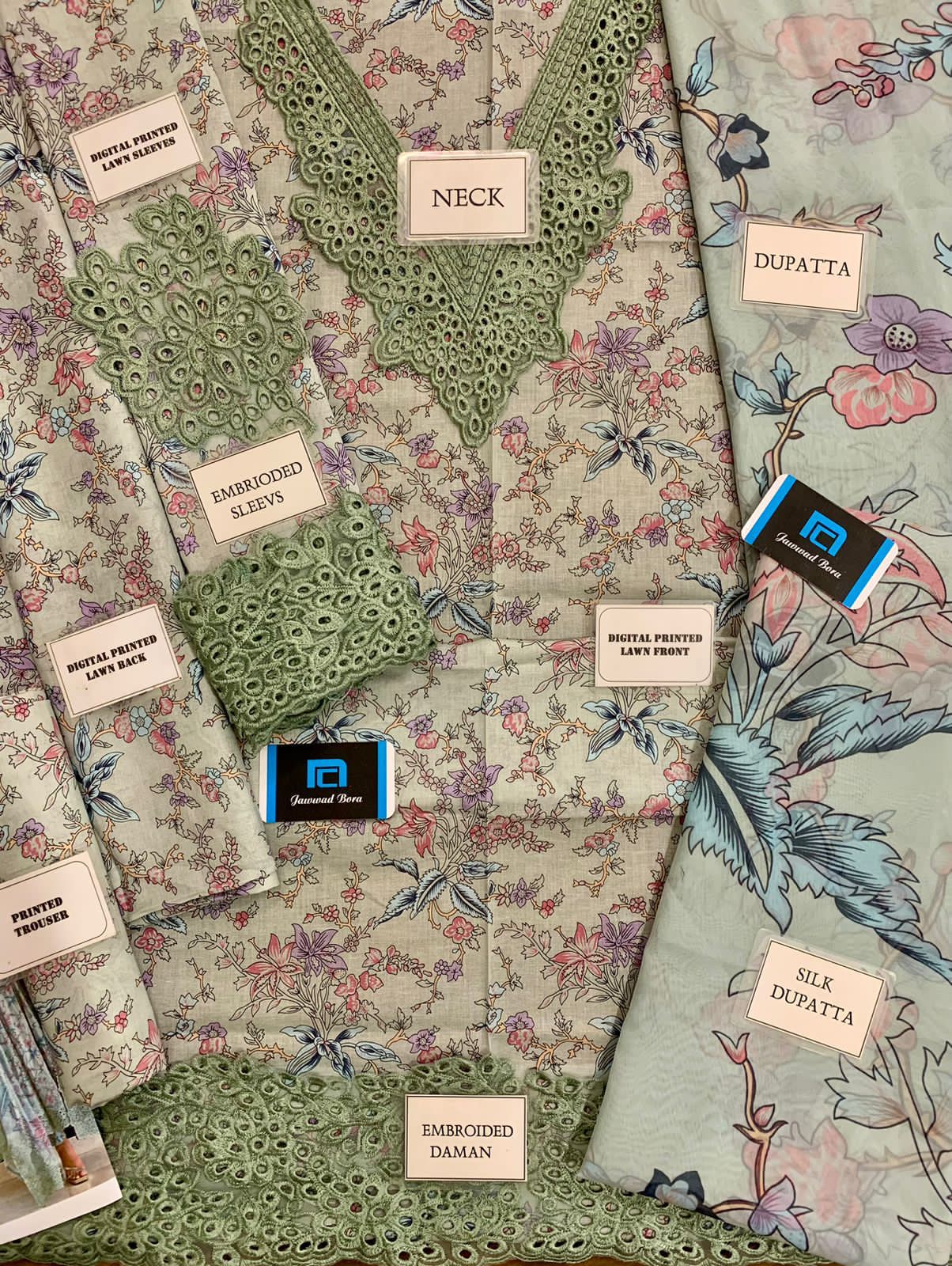 IZNIK Printed PURE Lawn Collection - Fabric Details FRONT DIGITAL PRINTED WITH HEAVY EMBROIDERED CHICKENKARI NECK PATCH AND HEAVY EMBROIDERED DAMAN PATCH DIGITAL PRINTED BACK DIGITAL PRINTED SLEEVES WITH HEAVY EMBROIDERED CHICKENKARI CUFF PATCH FULLY PRINTED TROUSER AS SHIRT PRINT INDIAN SILK DIGITAL PRINTED DUPATTA Unstitched: Yes NOTE : HIGHLY RECOMENDED