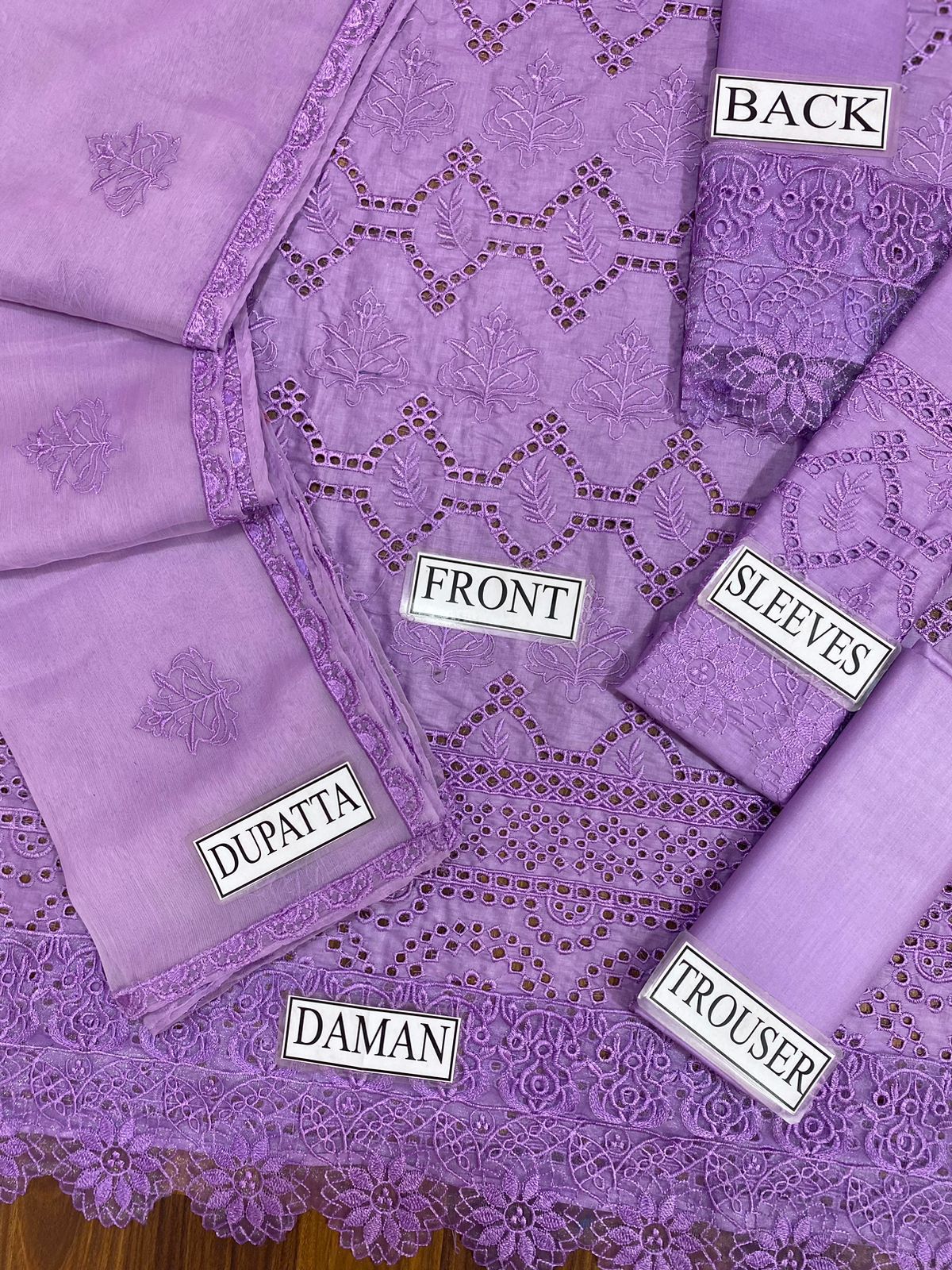 Brand Name : KAHF کھف Chikankari Collection 2024☆ ☆Fabric Details : Cotton & chiffon☆ •Chikankari Heavy Embroidered Cotton Front •Embroidered Chickenkari front and Back daman •Heavy Embroidered Cotton •chickenkari Sleeves •chiffon dupta with 4 side emb •Dyed Cotton Trouser