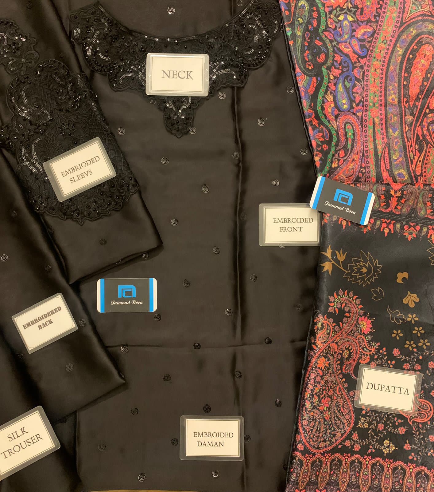 Lulusar / THReads & Motifs Re-Stock 03PCS UNSTITCHED SUIT FABRIC (SHIRT).....SHAMOZ SILK (DUPATTA).... ORIGINAL JACQUARD DIGITAL PRINT (TROUSER).... SILK DETAILS👇 ✔️ HEAVY EMBROIDERY GALA WITH STONE WORK ✔️ SHAMOZ SILK EMBROIDERED FRONT ✔️ SHAMOZ SILK EMBROIDERED BACK ✔️ SHAMOZ SILK EMBROIDERED SLEVEES ✔️ ORIGINAL JACQUARD PRINT DUPATTA WITH 4 SIDED PIPIN WITH 4 CORNERS ✔️ SHAMOZ SILK TROUSER