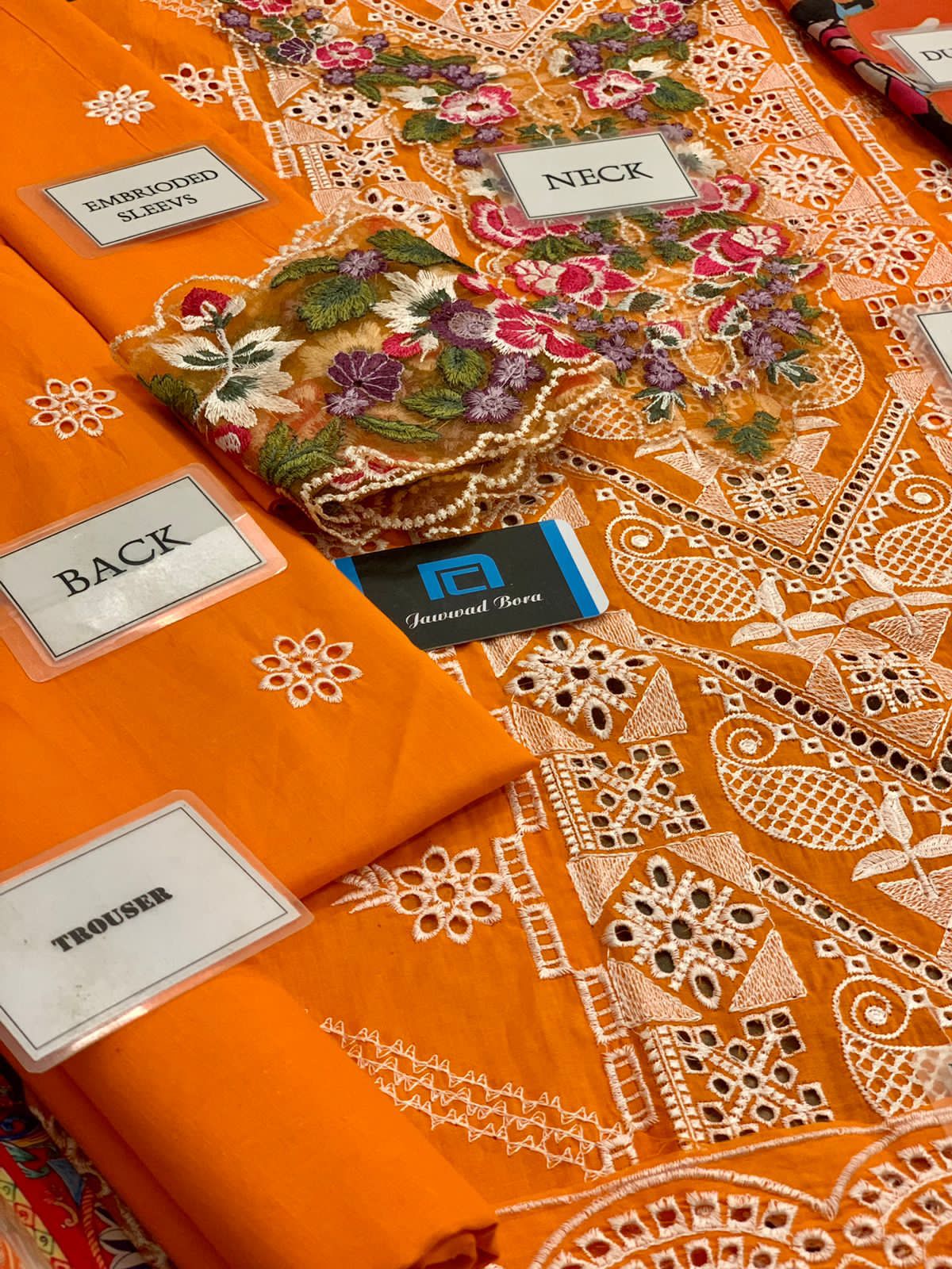 MUSHQ Unstitch Replica FABRIC LAWN suit With SILK Dupatta DETAILS ✔️ Gala Embroidered Bunch ✔️ Front Full Embroidered With ChikanKari ✔️ Daman Embroidered Bunch With ChikanKari ✔️ Sleeves ChikanKari With Embroidered Cuff Bunch ✔️ Back Embroidered ✔️ Digital Print Dupatta ✔️ Plain Trouser