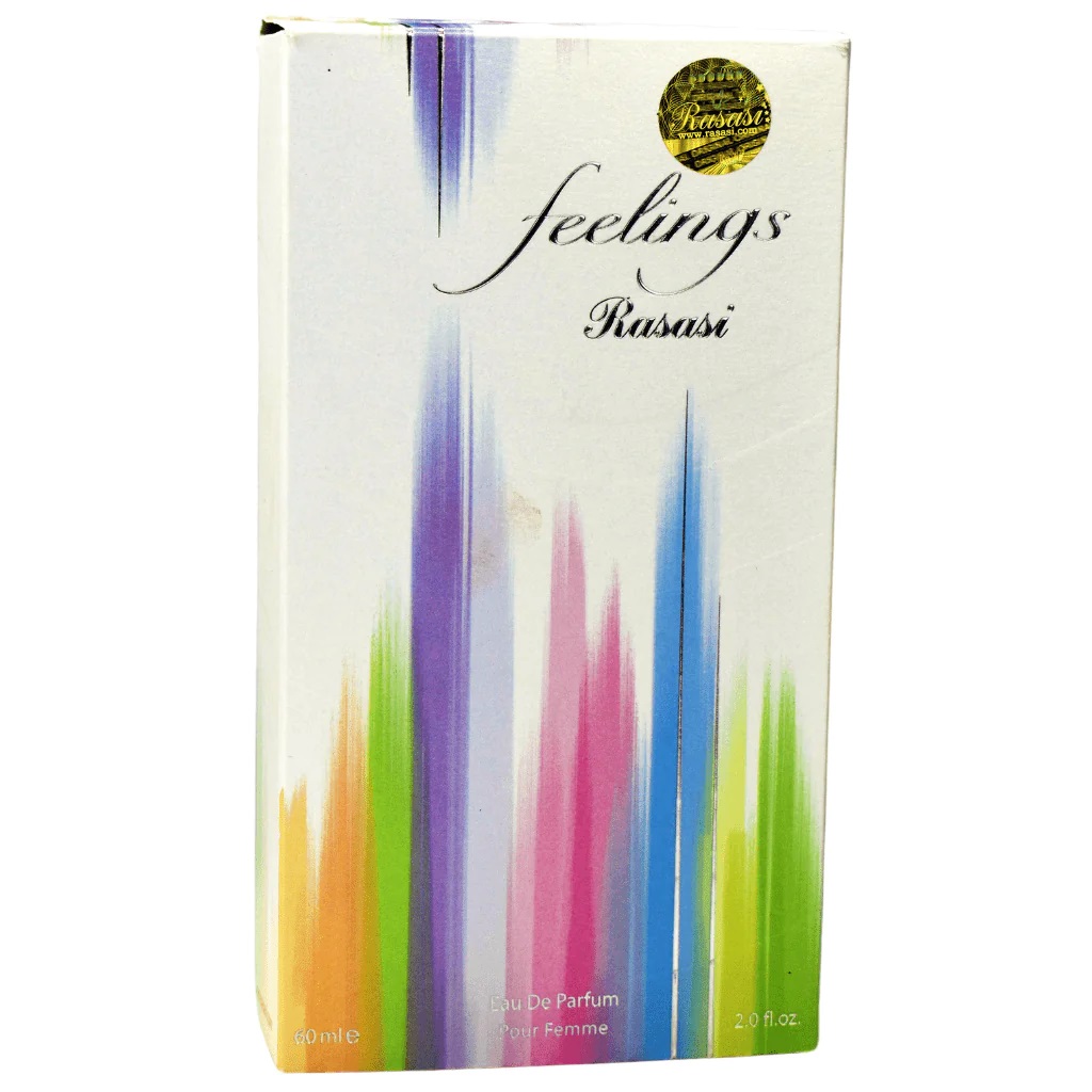 Product Specifications: Brand: Rasasi Fragrance: Feelings Type: Eau de Parfum Size: 60ml Top notes: Bergamot, Lemon, Rose Middle notes: Jasmine, Lavender Base notes: Vanilla, Amber, Sandalwood, Musk