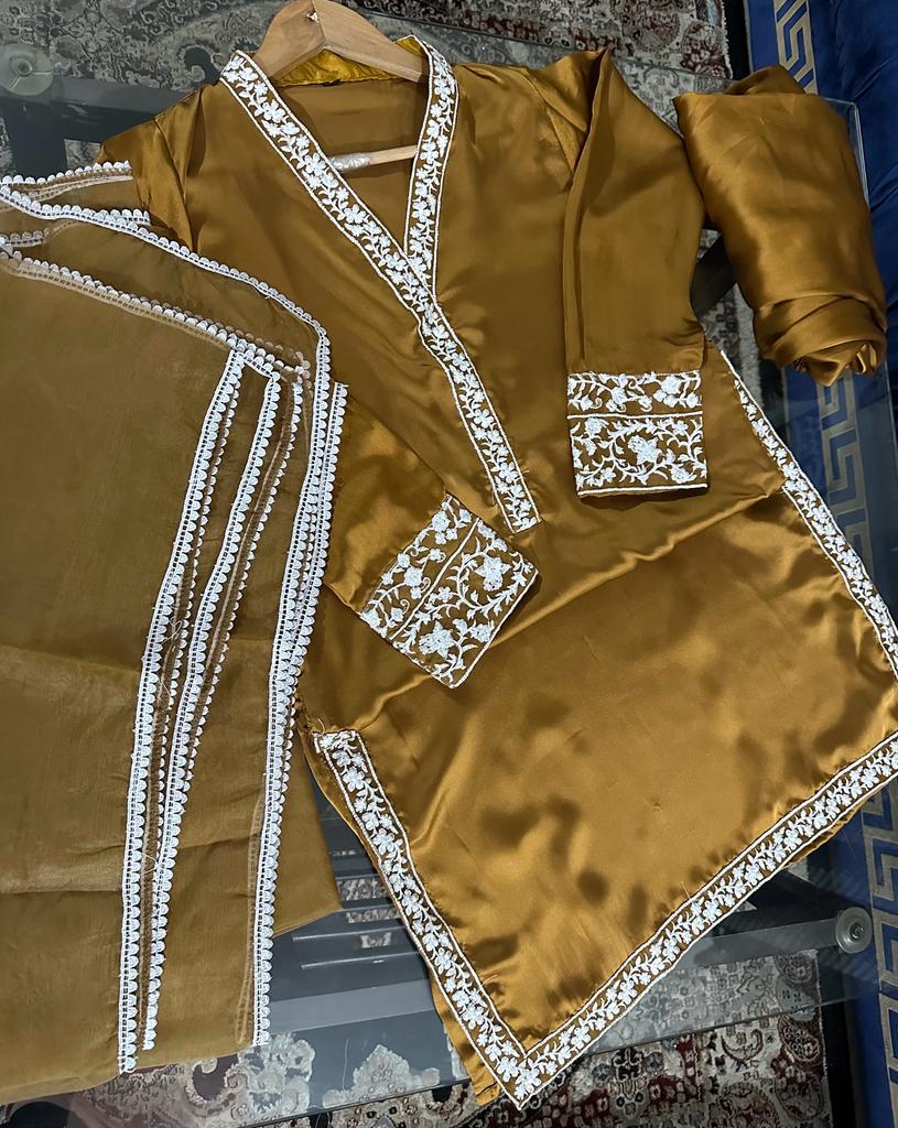 #newarrivle #eidarrivle Embd Shamooz Silk Shirt+pent Organza dupta S.19 chest M.21 L.22 Length..45.46